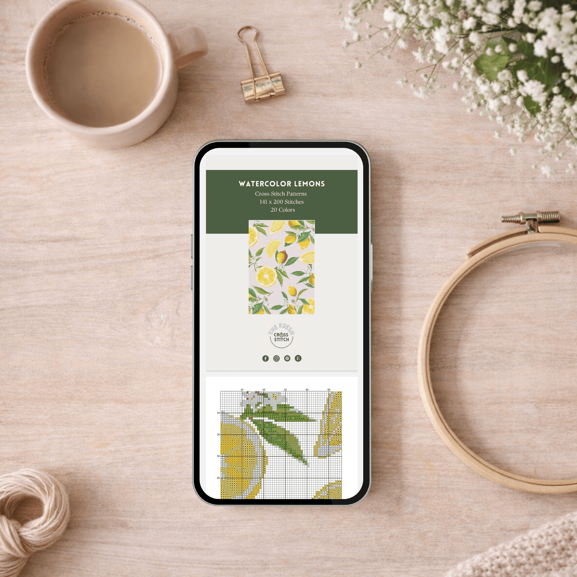 Акварельные лимоны, вышитые крестиком, идеально подходят для рамки или использования в качестве настольного коврика.